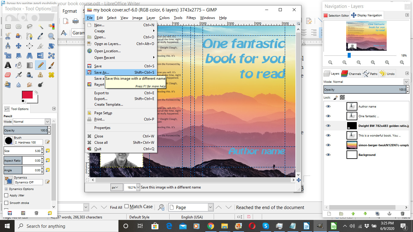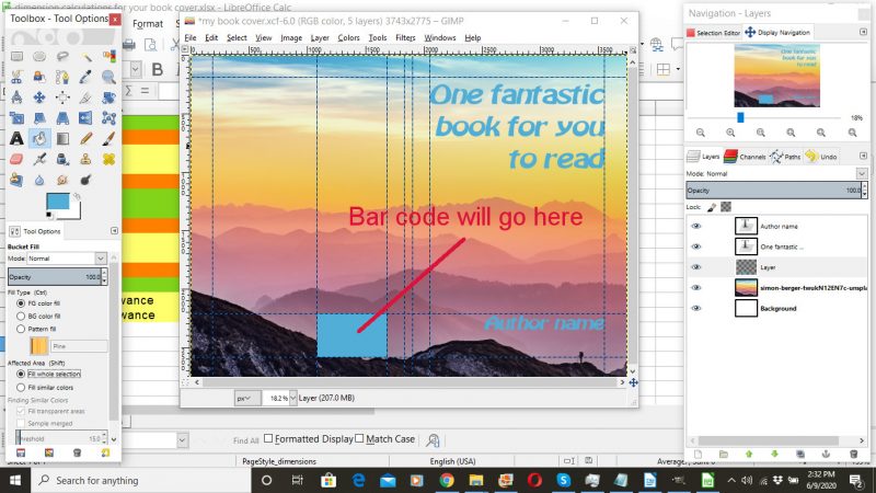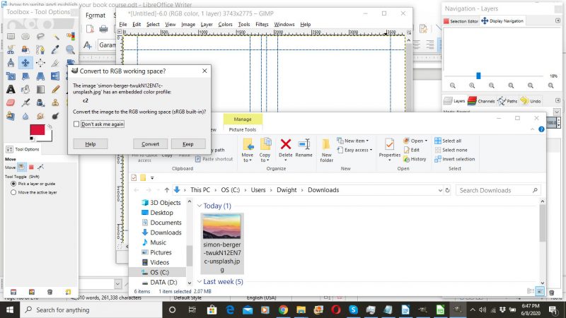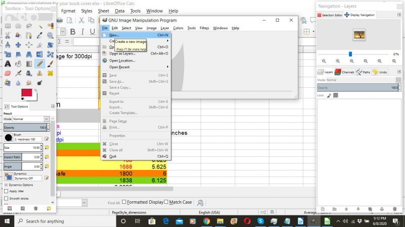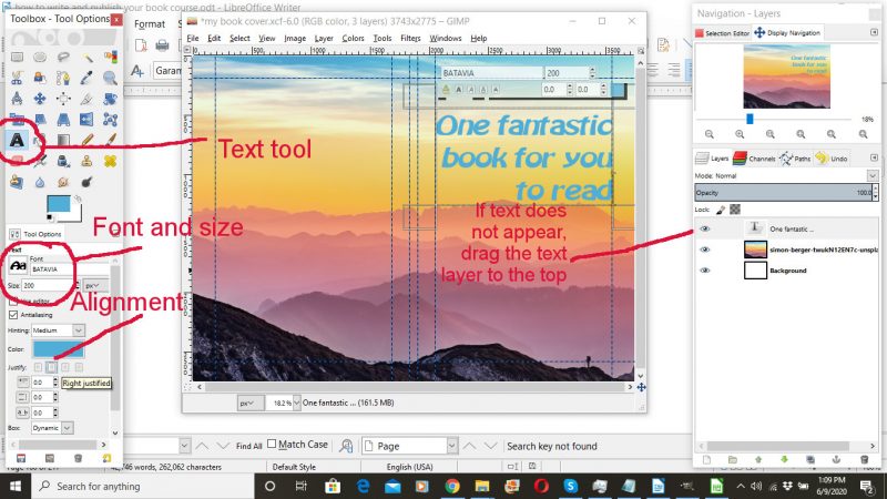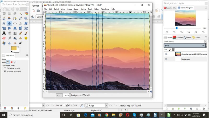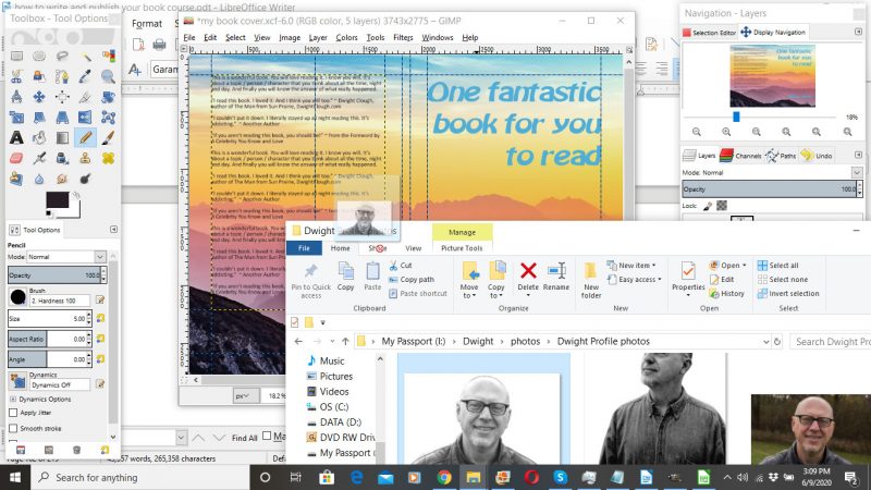 While you can create your book’s cover in Adobe InDesign, Adobe Illustrator, or Adobe Photoshop, But I’m going to assume you don’t have that software, and I’ll show you how to create your book cover using GIMP, a free image editing software program that works on Windows, Mac, or UNIX.